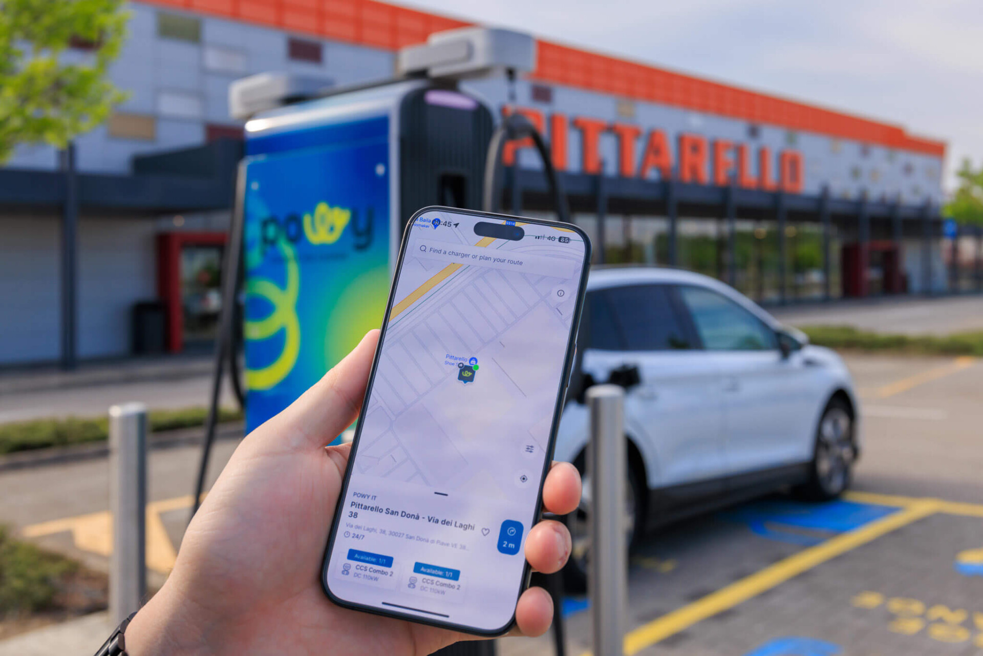 Ricarica il tuo veicolo elettrico ovunque tu sia: Powy Charge è la tua compagna di viaggio ideale, che ti consente di pianificare percorsi, trovare stazioni di ricarica nelle tue vicinanze, pagare in modo sicuro e monitorare il consumo di energia.